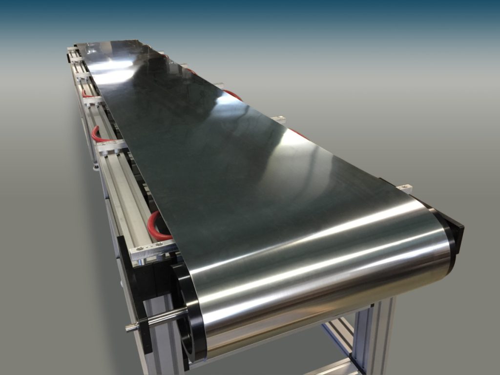Up to 36 inches (900 mm) in width, these custom steel conveyor belts maintain a high strength-to-weight ratio.